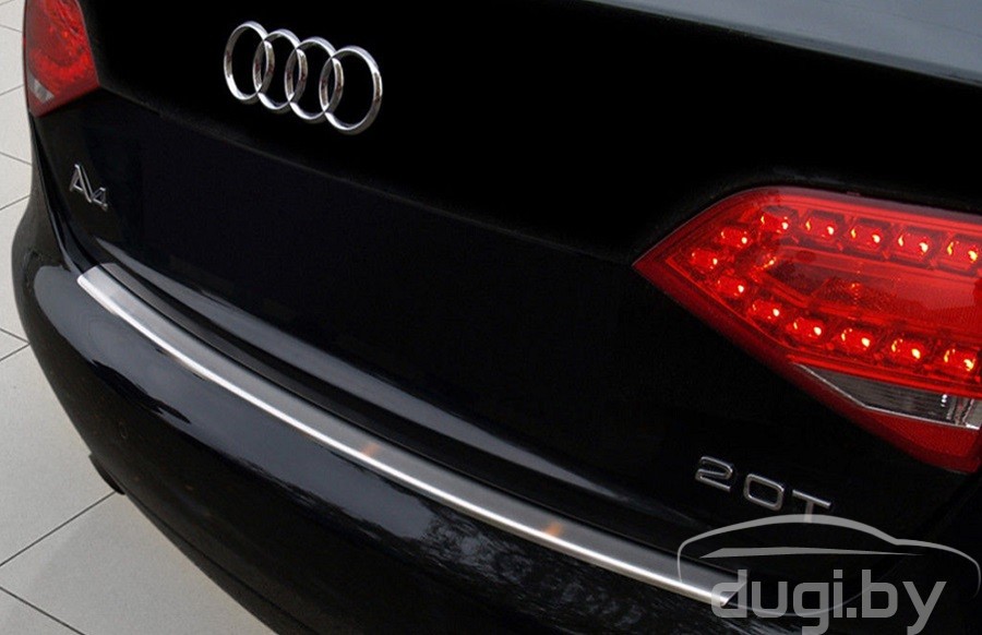 Оригинальная декоративная хромированная накладка на задний бампер для Audi A4 изготовлена из высококачественной нержавеющей стали марки AISI 304.