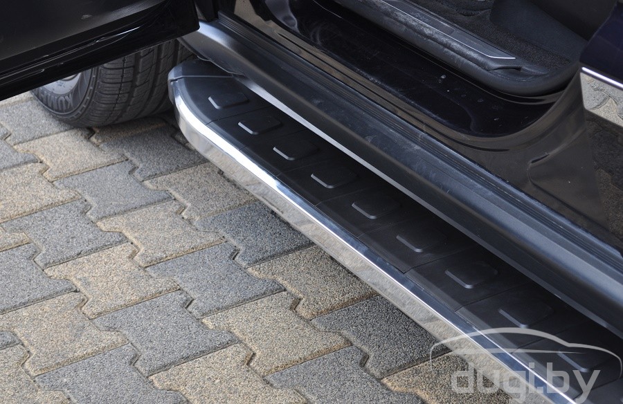 Боковые алюминиевые подножки (пороги) с пластмассовой накладкой для AUDI Q7 предназначены для защиты боковых повреждений автомобиля, а также для удобства посадки и высадки пассажиров в Audi Q5.