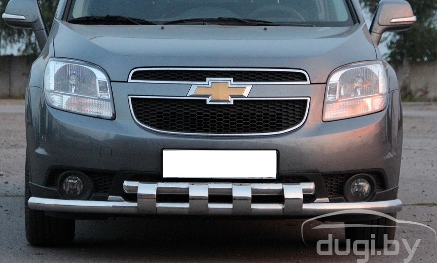 Защита переднего бампера труба двойная для Chevrolet Captiva предназначен для защиты кузова автомобиля при езде по пересеченной местности, а также от различного рода столкновений.