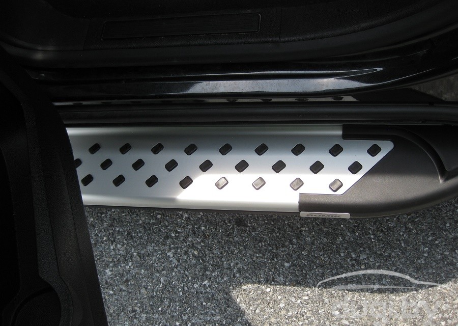 Площадки изготовлены из высококачественного алюминия толщина которого 5см и имеют специальный рельеф противоскольжения по всей поверхности порогов. Подножки просты в установке и не требуют сверления и сварки, в комплекте порогов присутствует схема установки и монтажный комплект креплений.