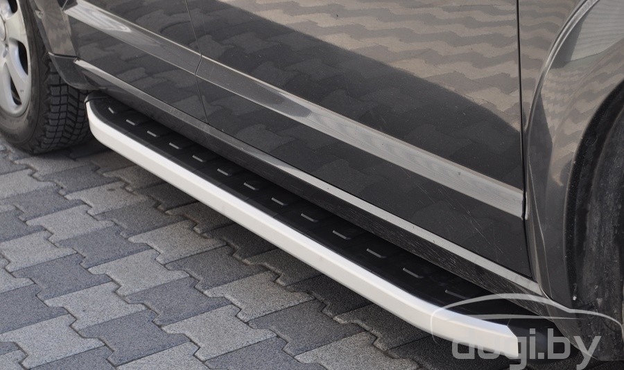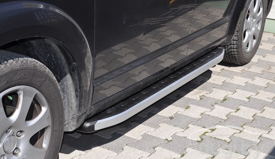 Защита боковых порогов состоит из алюминиевого профиля и боковой панели из алюминия покрытой матовым напылением. С двух сторон подножки закрыты торцевыми пластиками из ABS. Верхняя часть порога (подножки) изготовлена из высококачественного ABS пластика. Износоустойчива к различным климатическим условиям. Подножки отлично вписываются в аэродинамический внешний вид и дополняют оригинальный дизайн Вашего CHRYSLER VOYAGER.