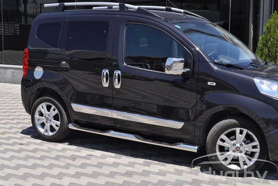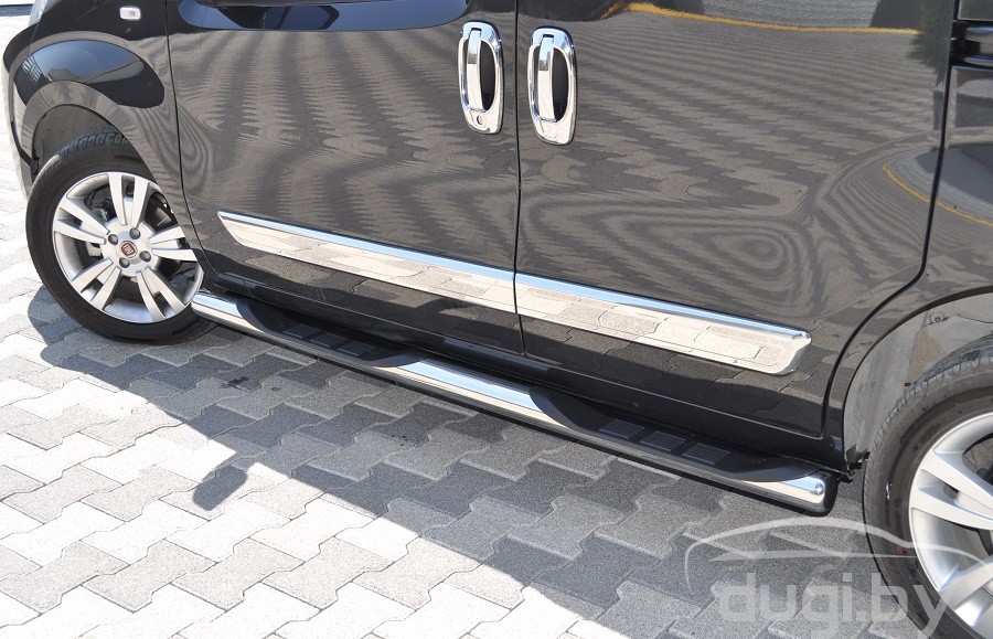 Боковые подножки (трубы) для Citroen Nemo предназначены для защиты боковых повреждений автомобиля, а также для удобства посадки и высадки пассажиров.