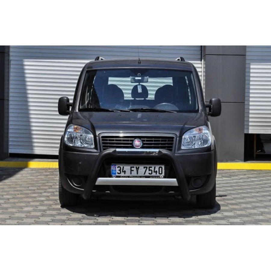 Защита переднего бампера (кенгурятник) для Fiat Doblo предназначена для защиты кузова автомобиля при езде по пересеченной местности, а также от различного рода столкновений.