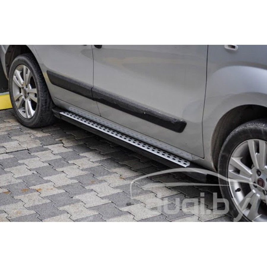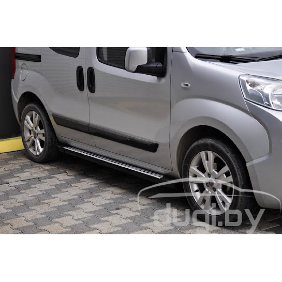 Боковые алюминиевые подножки (пороги) для Fiat Fiorino предназначены для защиты боковых повреждений автомобиля, а также для удобства посадки и высадки пассажиров.