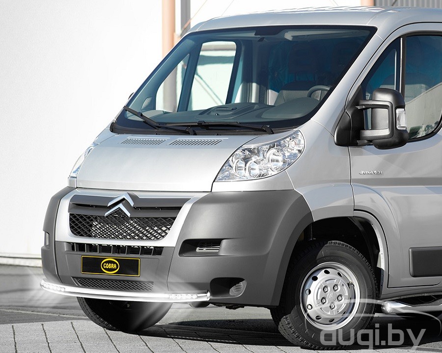 Защита переднего бампера передняя одинарная труба со светодиодными дневными ходовыми огнями Ø 60 мм для Fiat Ducato.