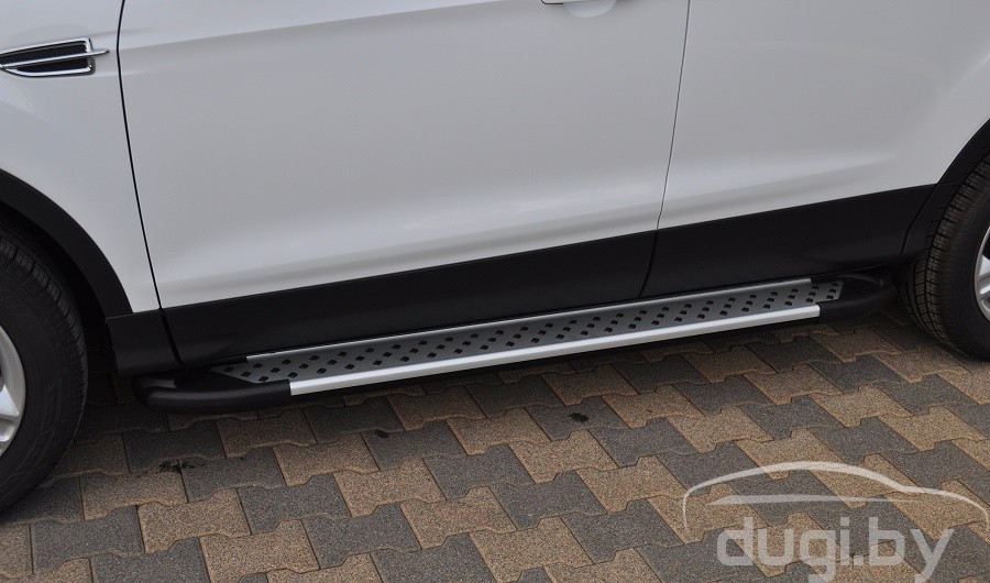 Боковые алюминиевые подножки ''ARTEMIS'' для Ford Kuga предназначены для защиты боковых повреждений автомобиля, а также для удобства посадки и высадки пассажиров.