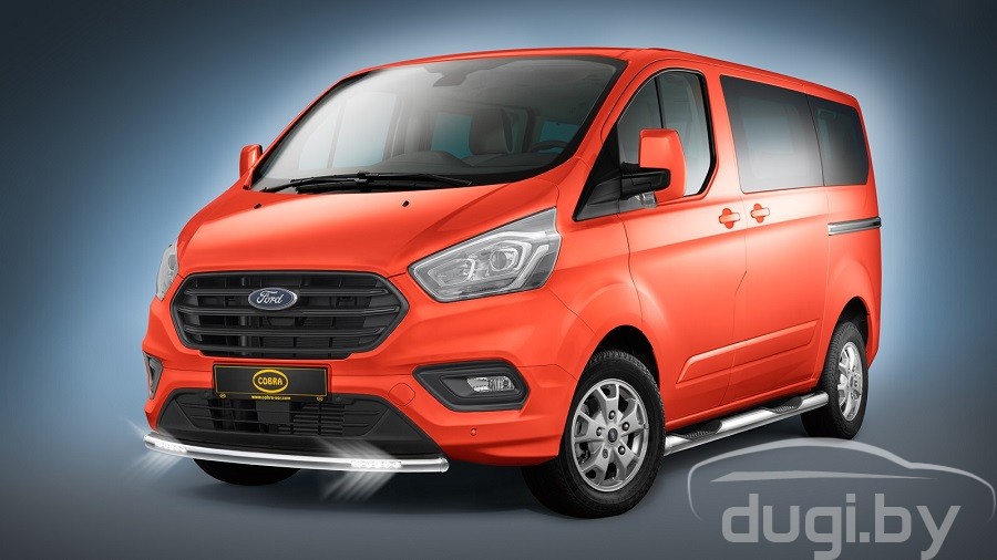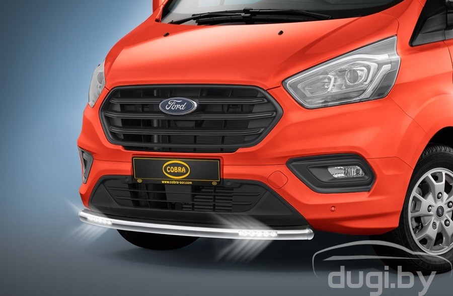 Защита переднего бампера передняя одинарная труба со светодиодными дневными ходовыми огнями Ø 60 мм для Ford Transit Custom.