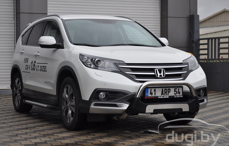 Защита переднего бампера кенгурятник для Honda CR-V предназначен для защиты кузова автомобиля при езде по пересеченной местности, а также от различного рода столкновений.