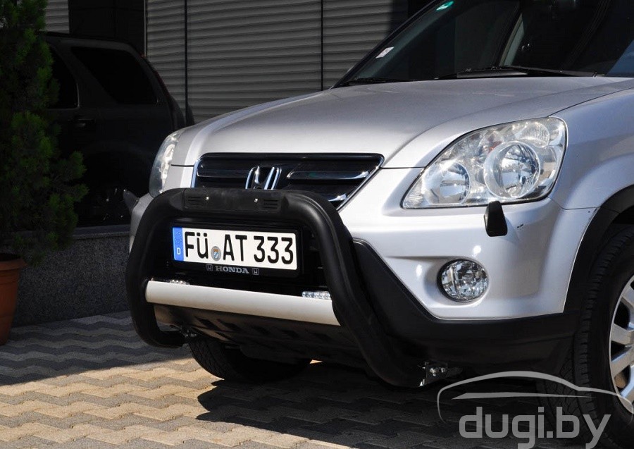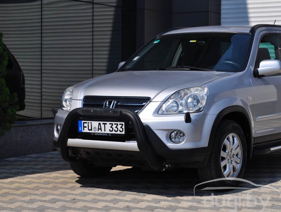 Защита переднего бампера кенгурятник для Honda CR-V предназначена для защиты кузова автомобиля при езде по пересеченной местности, а также от различного рода столкновений.
