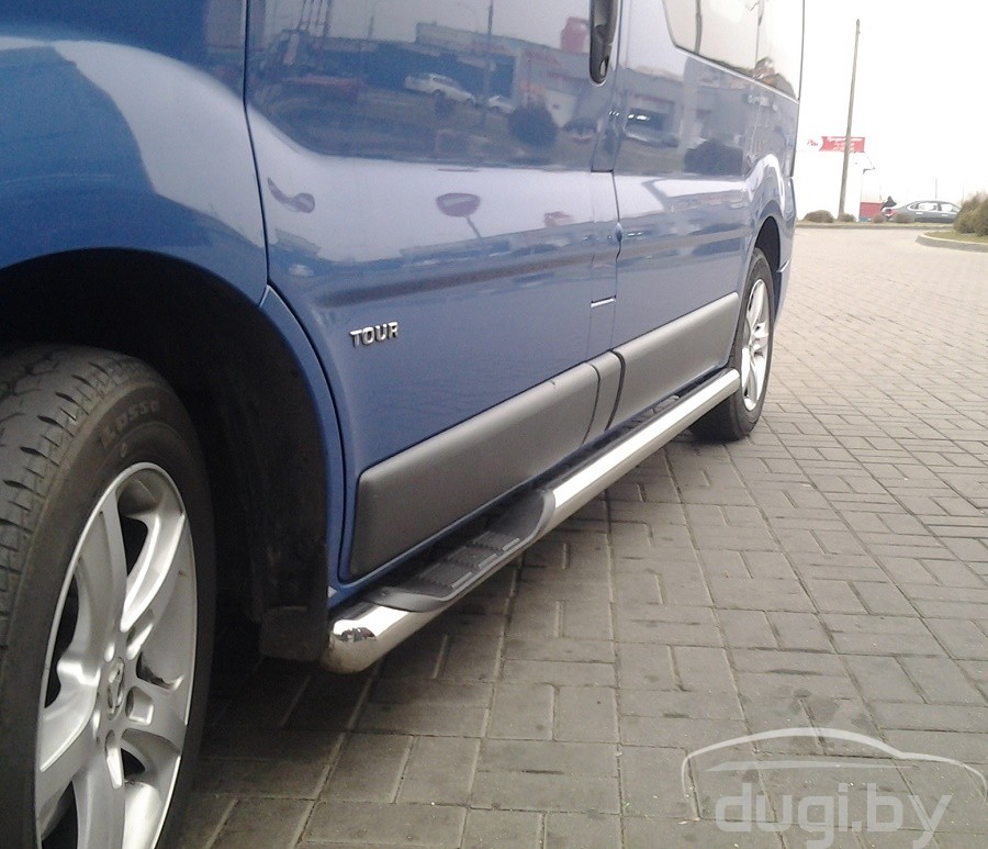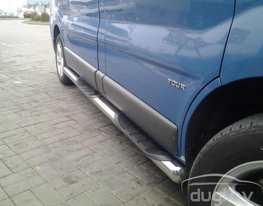 Боковые подножки (трубы) для Hyundai H1 предназначены для защиты боковых повреждений автомобиля, а также для удобства посадки и высадки пассажиров.