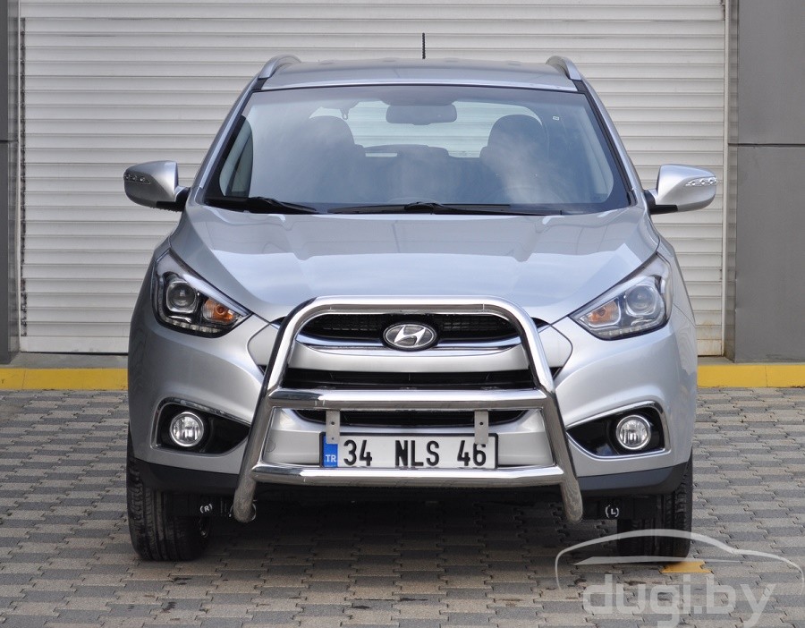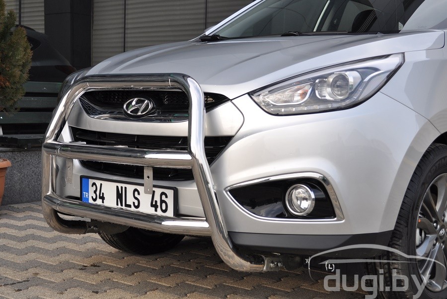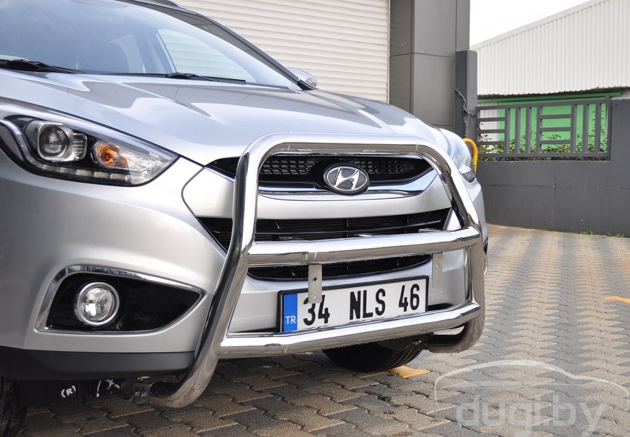 Защита переднего бампера (кенгурятник) для Hyundai IX35 предназначен для защиты кузова автомобиля при езде по пересеченной местности, а также от различного рода столкновений.