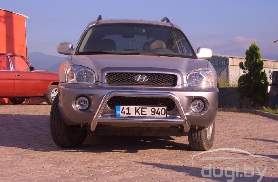 Защита переднего бампера (кенгурятник) из нержавеющей стали - подчеркнет эстетический вид Вашего Hyundai Santa Fe.