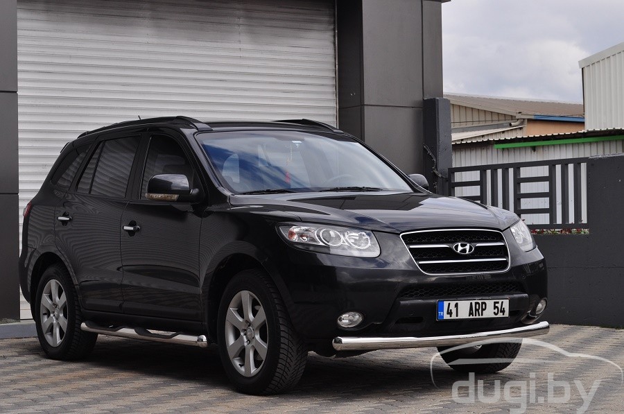 Защита переднего бампера (труба прямая) для Hyundai Santa Fe предназначена для защиты кузова автомобиля при езде по пересеченной местности, а также от различного рода столкновений.
