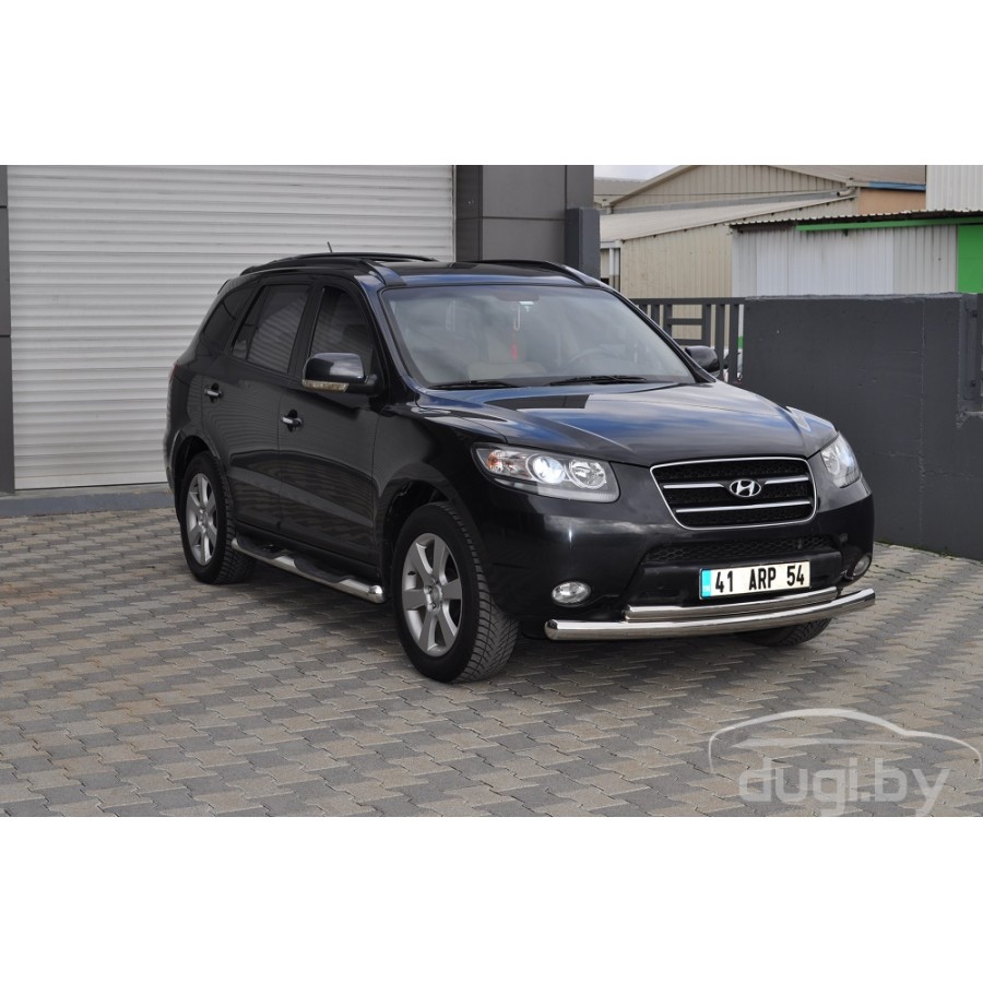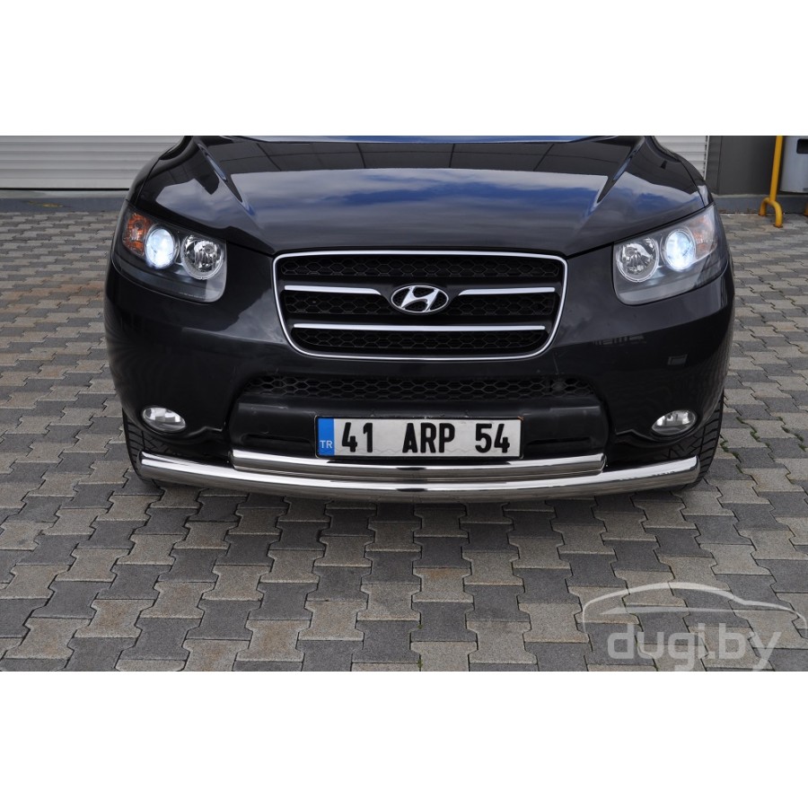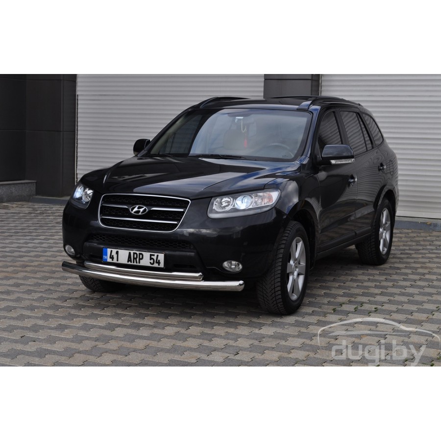Защита переднего бампера труба двойная для Hyundai Santa Fe предназначен для защиты кузова автомобиля при езде по пересеченной местности, а также от различного рода столкновений.