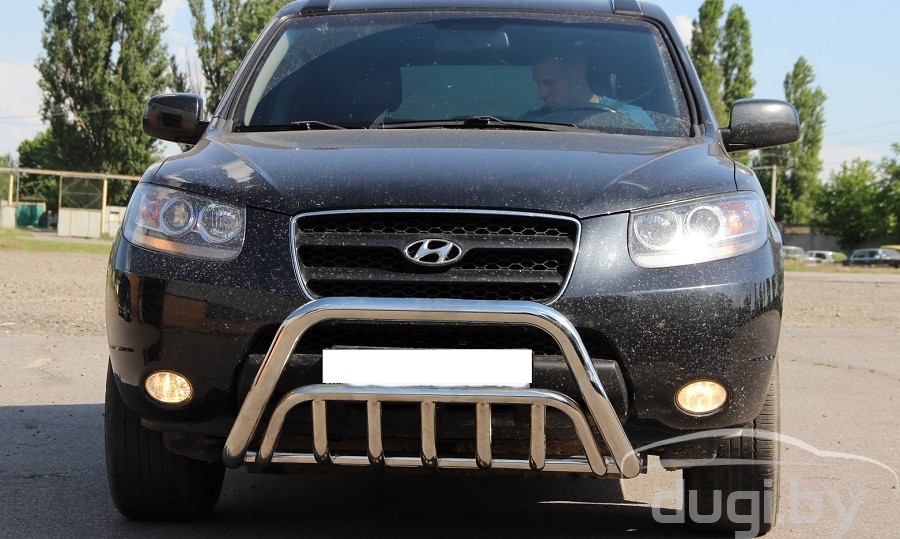 Защита переднего бампера (кенгурятник) из нержавеющей стали - подчеркнет эстетический вид Вашего Hyundai Santa Fe.