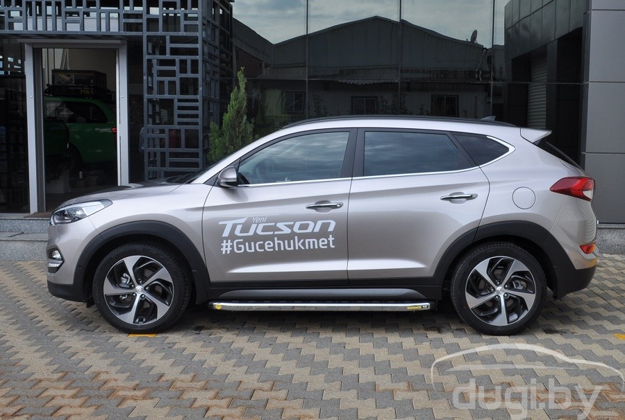 Алюминиевые боковые подножки "NewStarChrome" - подчеркнут эстетический вид и придадут индивидуальности Вашему Hyundai Tucson.