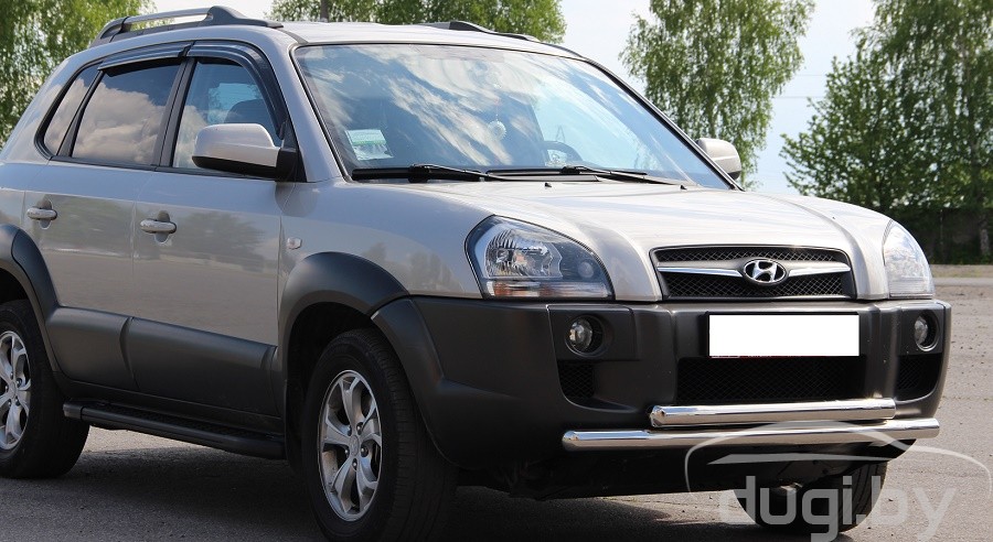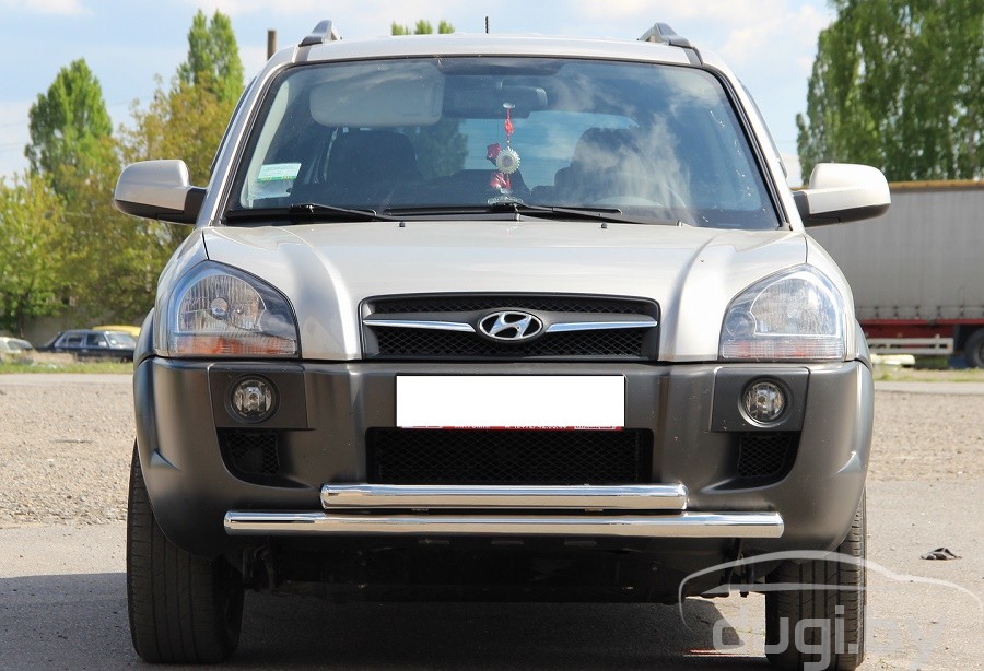 Защита переднего бампера труба двойная для Hyundai Tucson предназначен для защиты кузова автомобиля при езде по пересеченной местности, а также от различного рода столкновений.