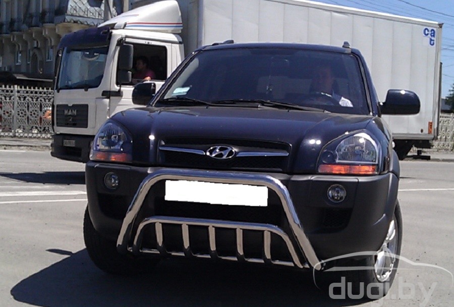Защита переднего бампера (кенгурятник) для Hyundai Tucson предназначен для защиты кузова автомобиля при езде по пересеченной местности, а также от различного рода столкновений.