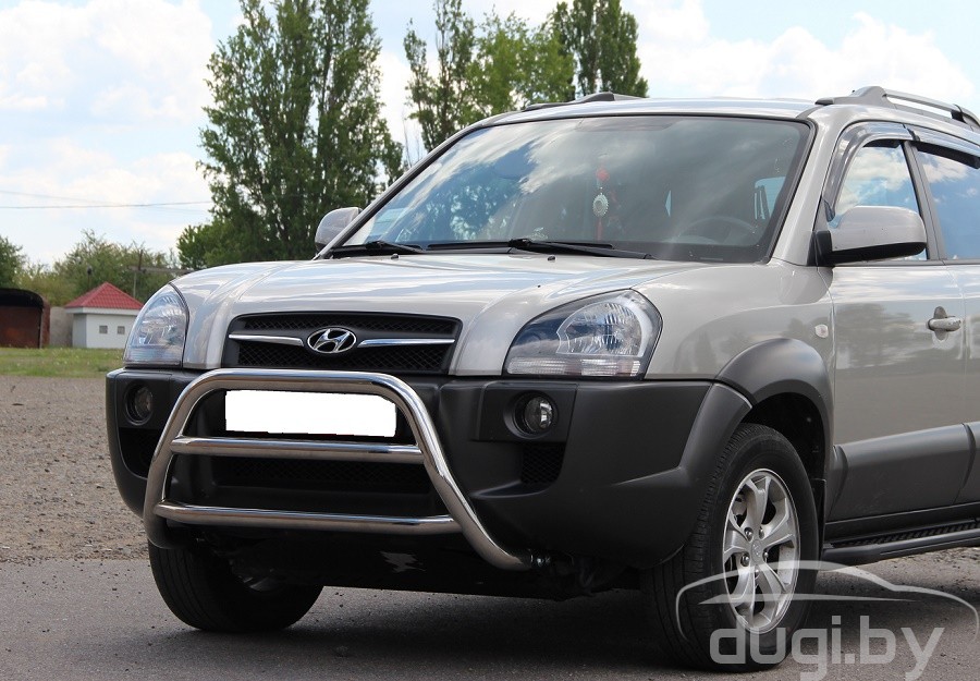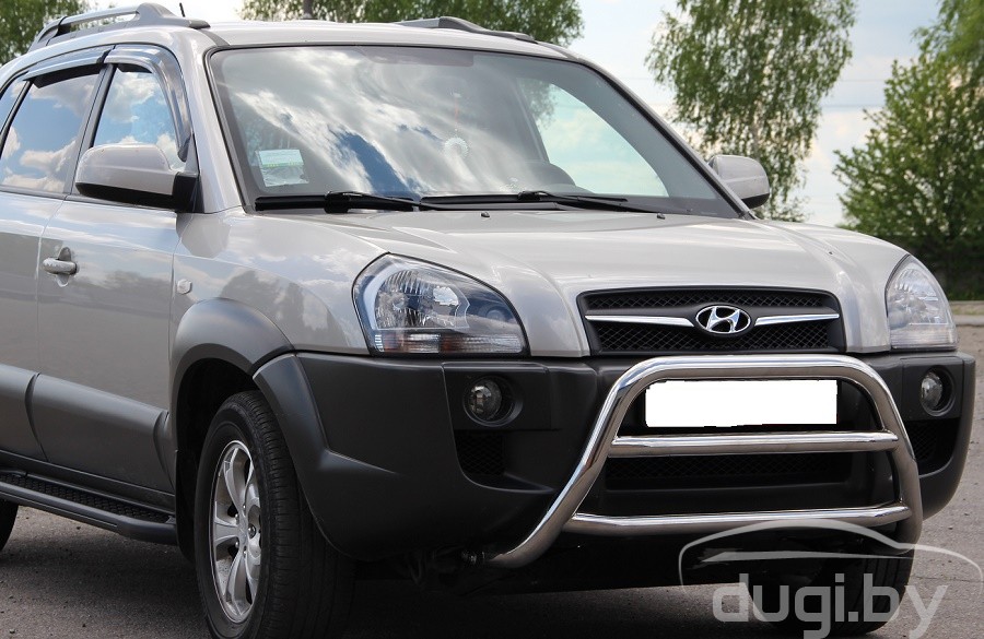 Защита переднего бампера (кенгурятник) для Hyundai Tucson предназначен для защиты кузова автомобиля при езде по пересеченной местности, а также от различного рода столкновений.