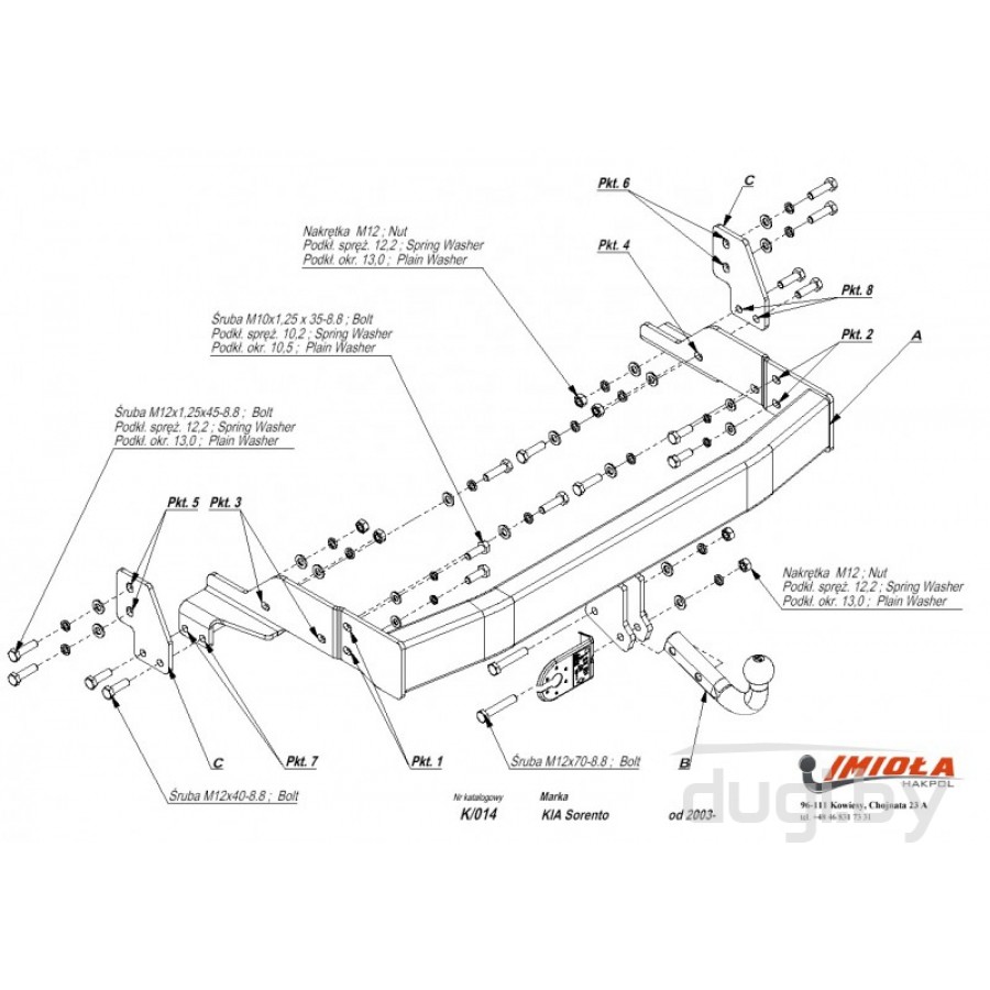 Фаркоп Imiola Hakpol для Kia Sorento 2002-2006.