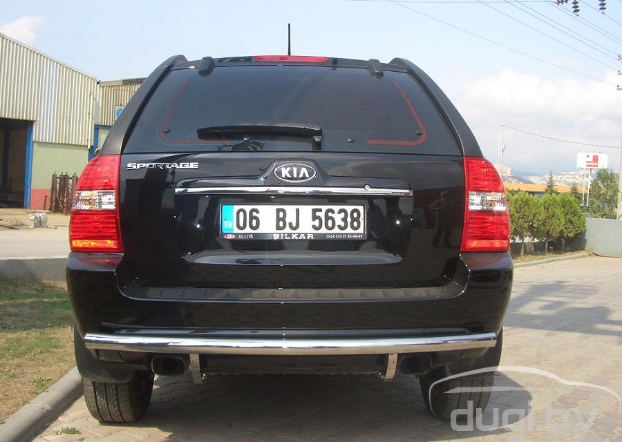 Защита заднего бампера труба для Kia Sportage предназначена для защиты кузова автомобиля при езде по пересеченной местности, а также от различного рода столкновений.