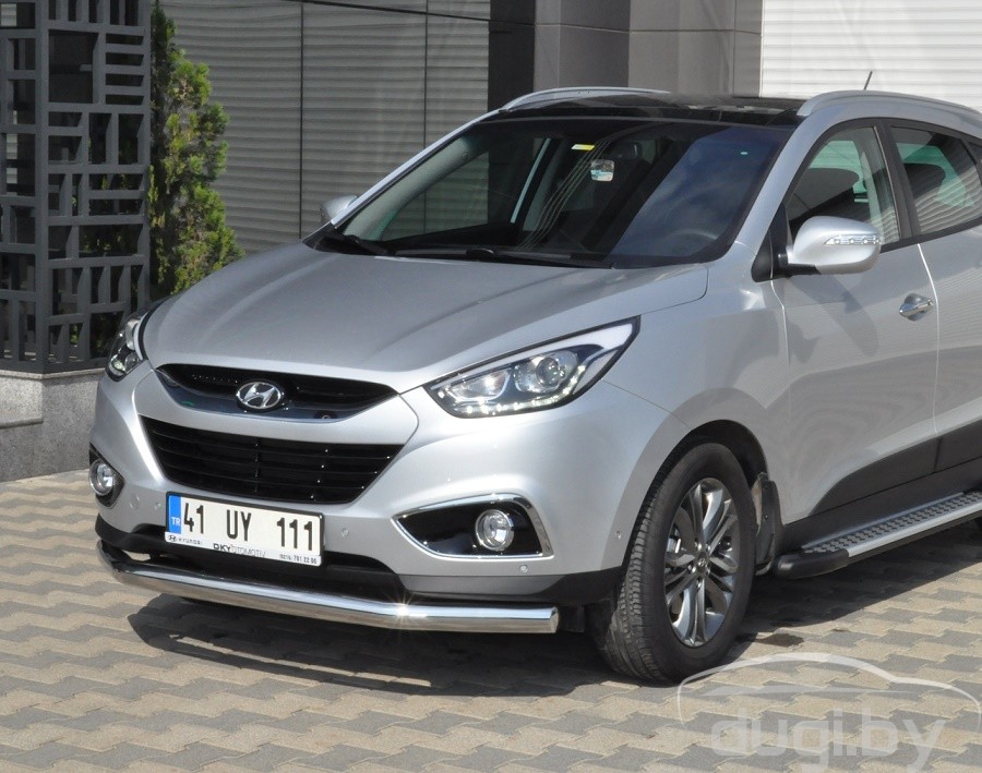 Защита переднего бампера (труба прямая) для Kia Sportage предназначена для защиты кузова автомобиля при езде по пересеченной местности, а также от различного рода столкновений.