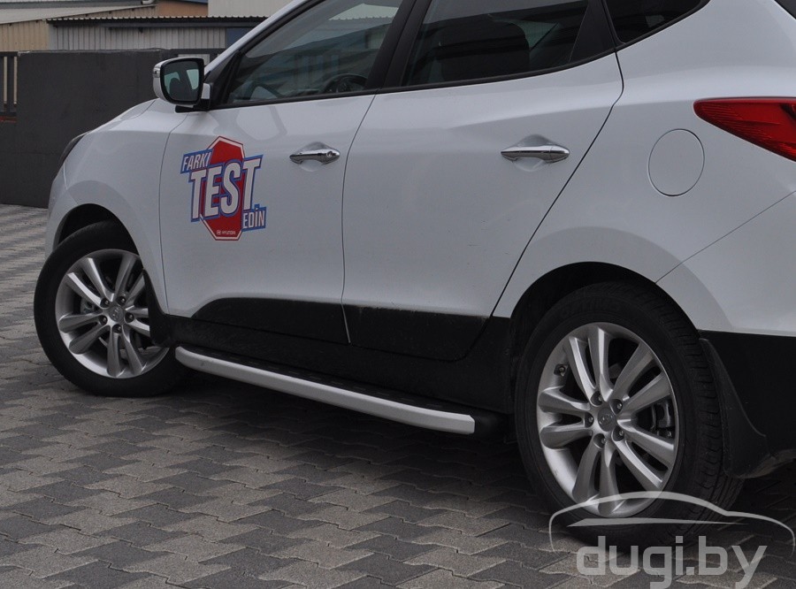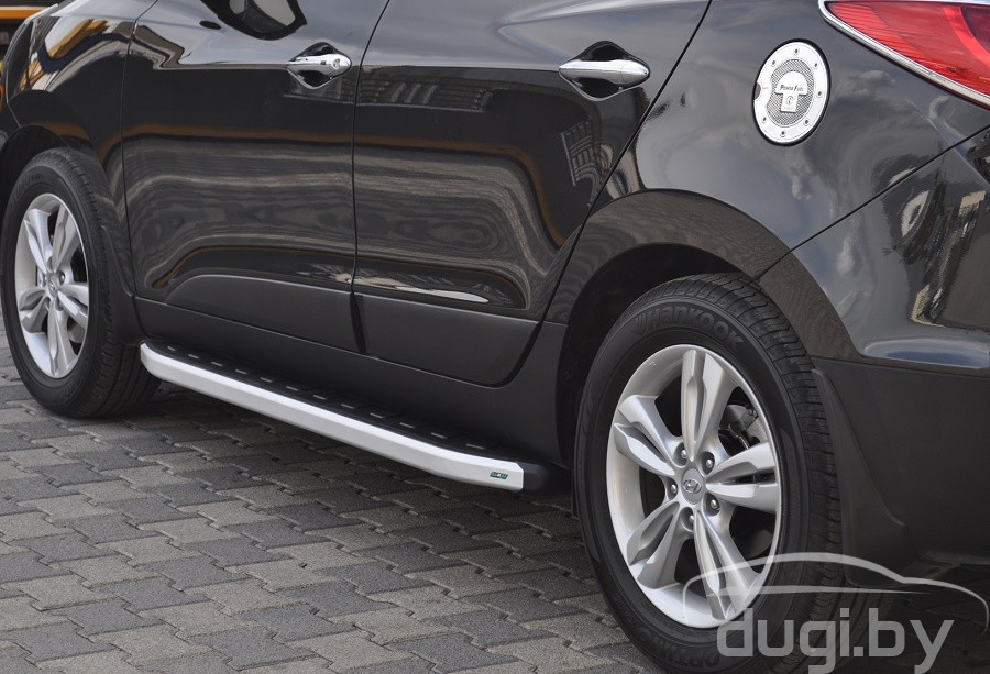 Защита боковых порогов состоит из алюминиевого профиля и боковой панели из алюминия покрытой матовым напылением. С двух сторон подножки закрыты торцевыми пластиками из ABS. Верхняя часть порога (подножки) изготовлена из высококачественного ABS пластика. Износоустойчива к различным климатическим условиям. Подножки отлично вписываются в аэродинамический внешний вид и дополняют оригинальный дизайн Вашего Kia Sportage.