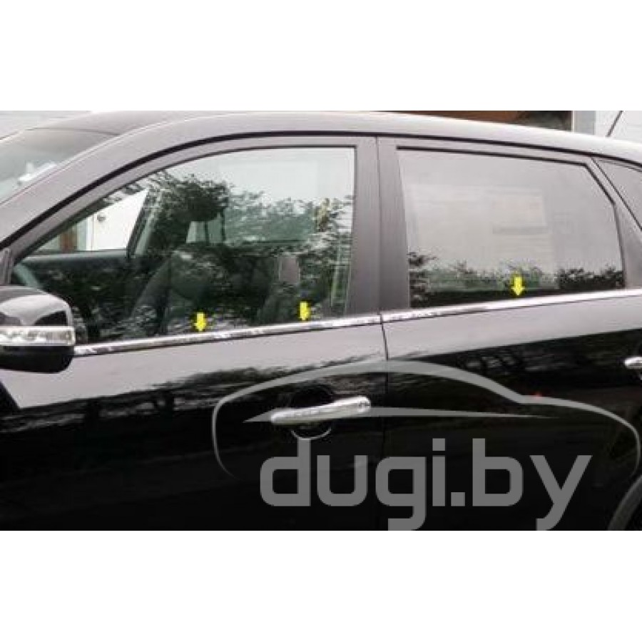 Оригинальные декоративные хромированные накладки на нижние молдинги стекол для Киа Соренто изготовлены из высококачественной нержавеющей стали марки AISI 304.