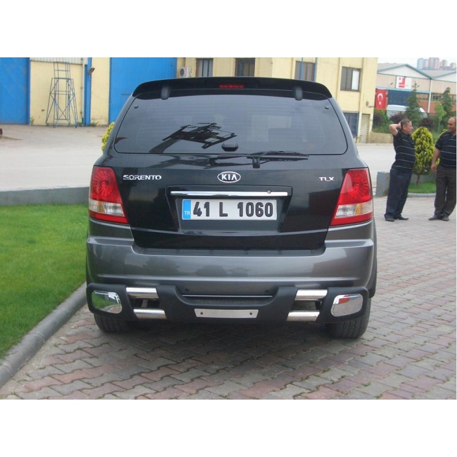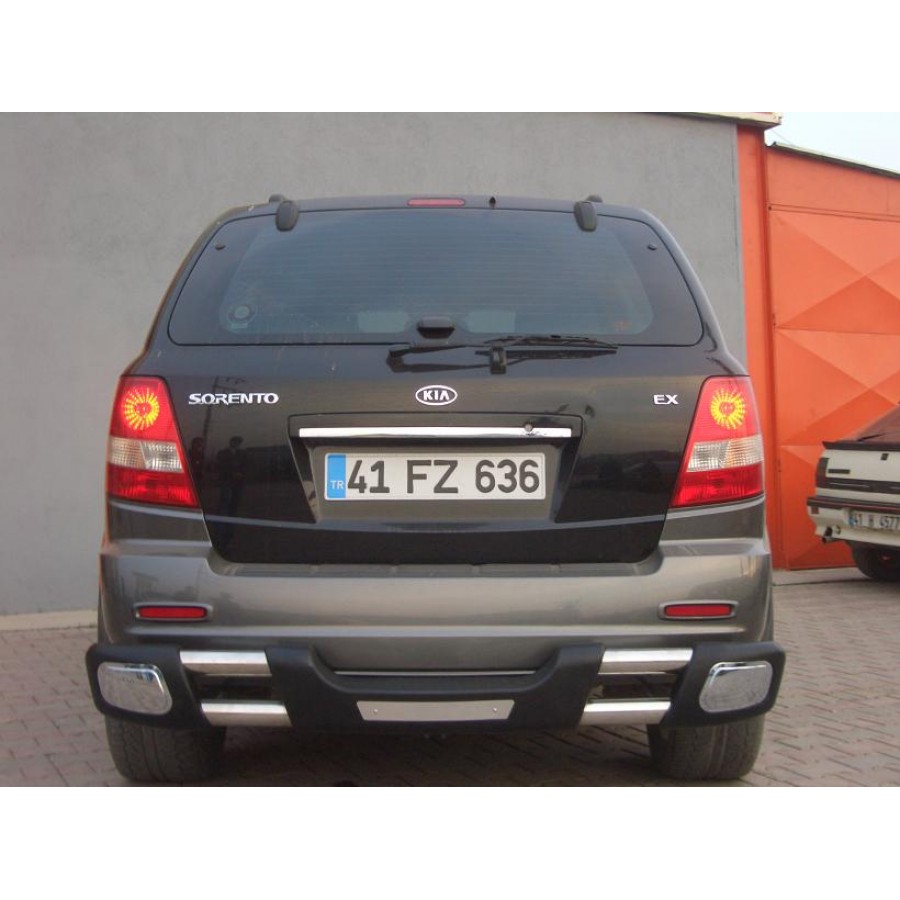 Защита заднего бампера для KIA SORENTO предназначена для защиты кузова автомобиля при езде по пересеченной местности, а также от различного рода столкновений.