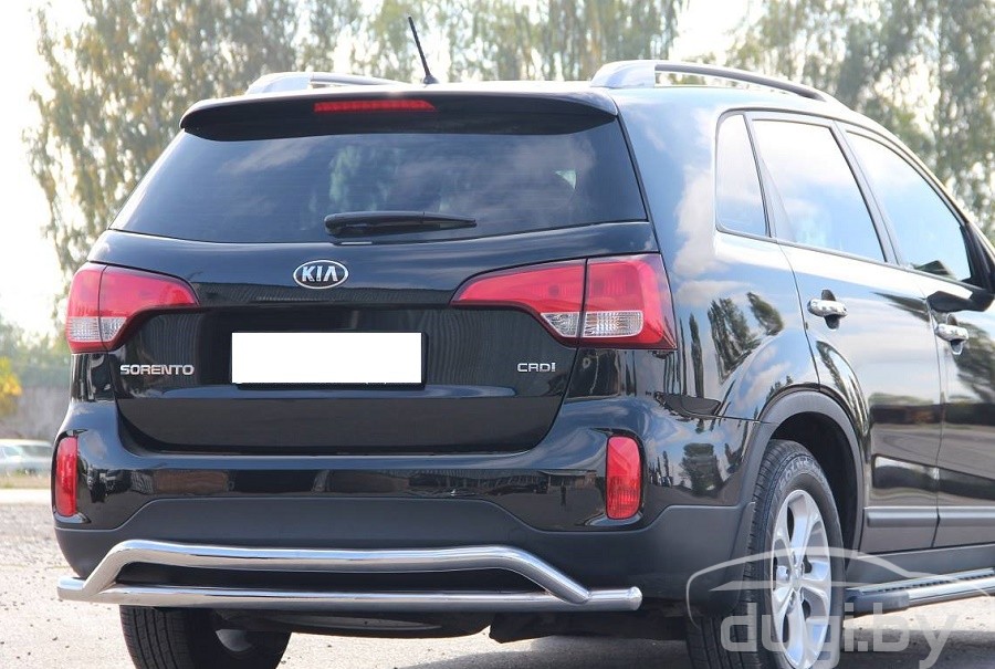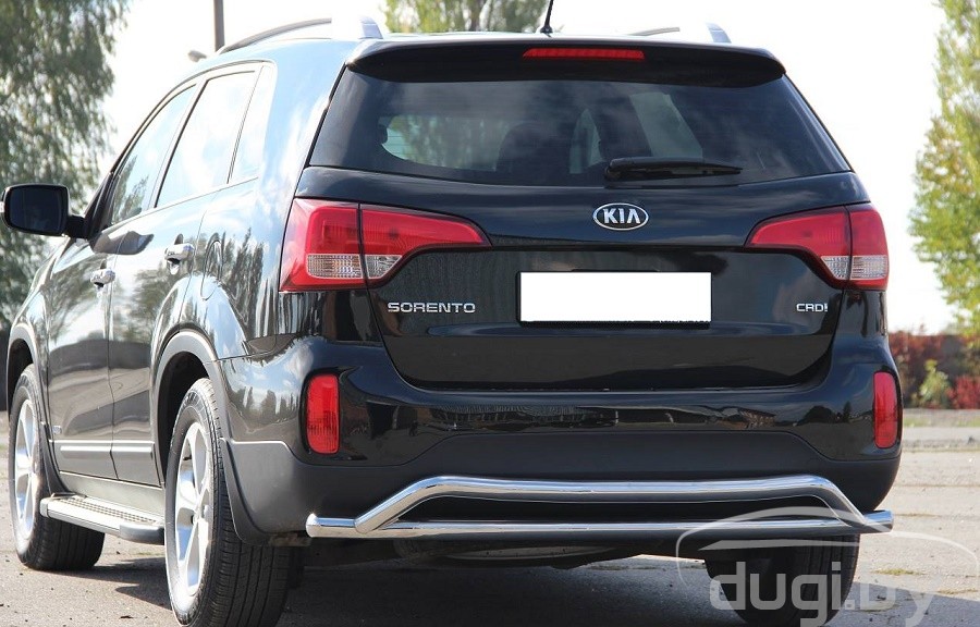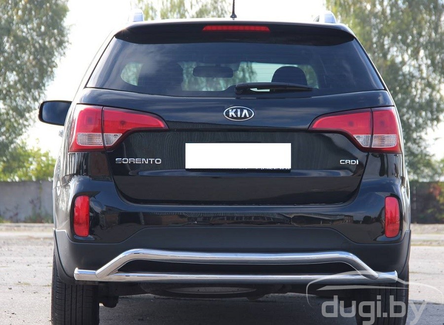 Защита заднего бампера для Kia Sorento предназначена для защиты кузова автомобиля при езде по пересеченной местности, а также от различного рода столкновений.