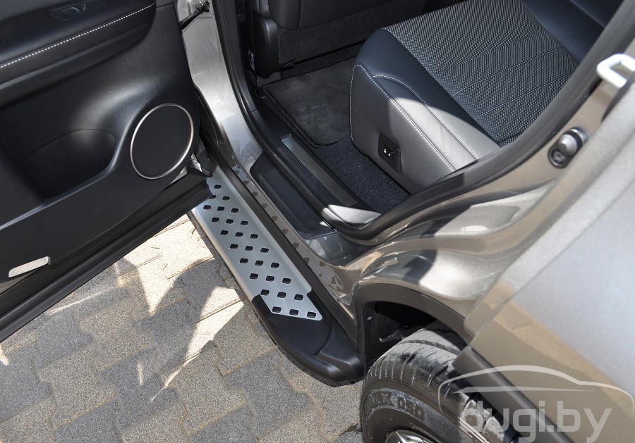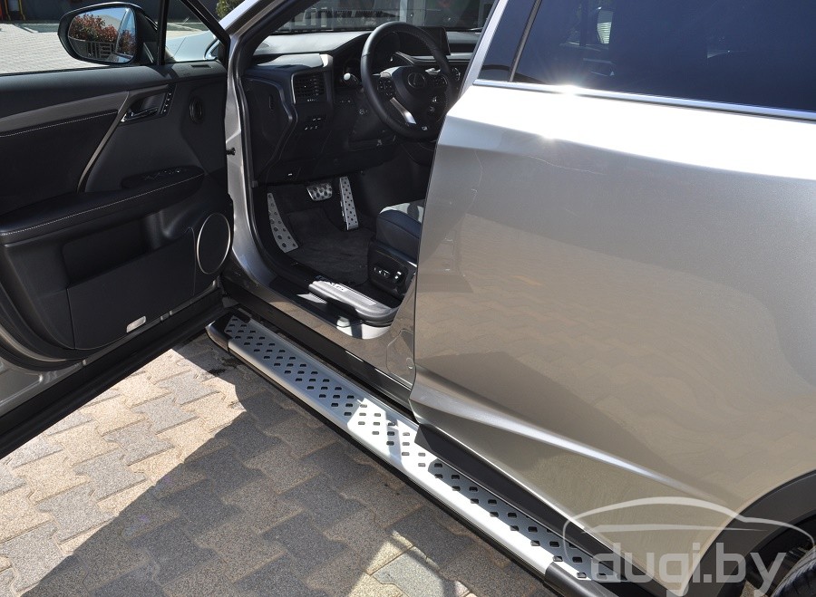 Боковые алюминиевые подножки ''ARTEMIS'' для Lexus RX предназначены для защиты боковых повреждений автомобиля, а также для удобства посадки и высадки пассажиров.