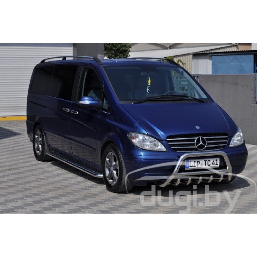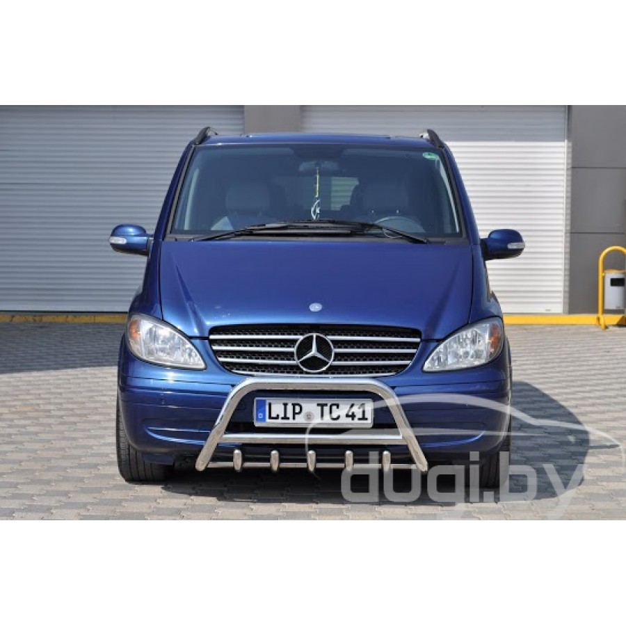 Защита переднего бампера (кенгурятник) для Mercedes-Benz Viano предназначен для защиты кузова автомобиля при езде по пересеченной местности, а также от различного рода столкновений.