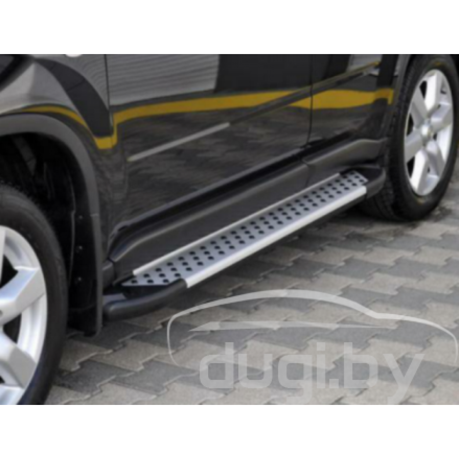 Площадки изготовлены из высококачественного алюминия толщина которого 5см и имеют специальный рельеф противоскольжения по всей поверхности порогов. Подножки просты в установке и не требуют сверления и сварки, в комплекте порогов присутствует схема установки и монтажный комплект креплений.