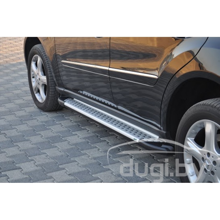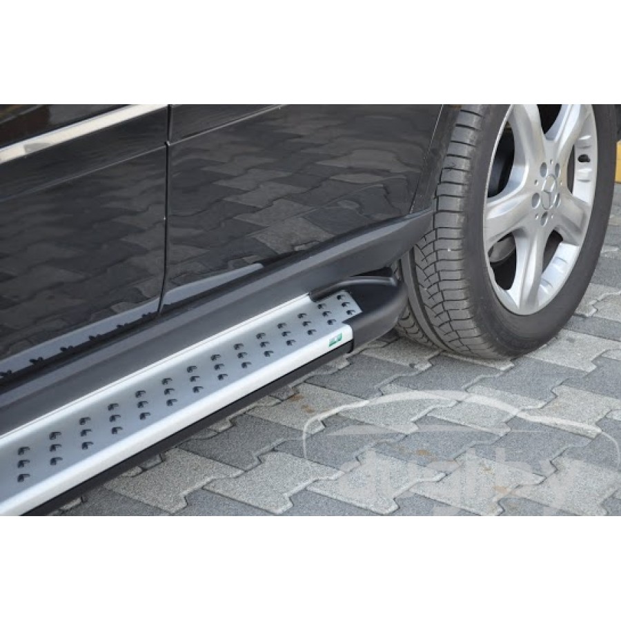 Боковые алюминиевые подножки - пороги с пластмассовой накладкой для Mercedes Viano предназначены для защиты боковых повреждений автомобиля, а также для удобства посадки и высадки пассажиров.