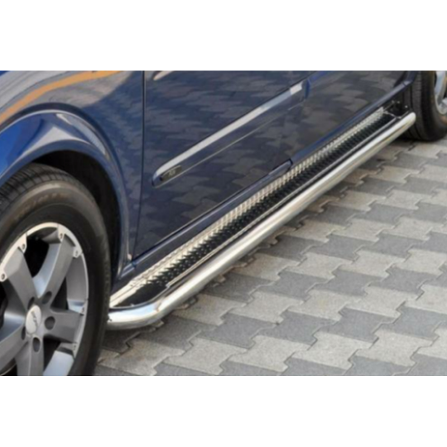 Боковые пороги площадки из нержавеющей стали для Mercedes Viano предназначены для защиты боковых повреждений, а также для удобства посадки и высадки пасажиров.