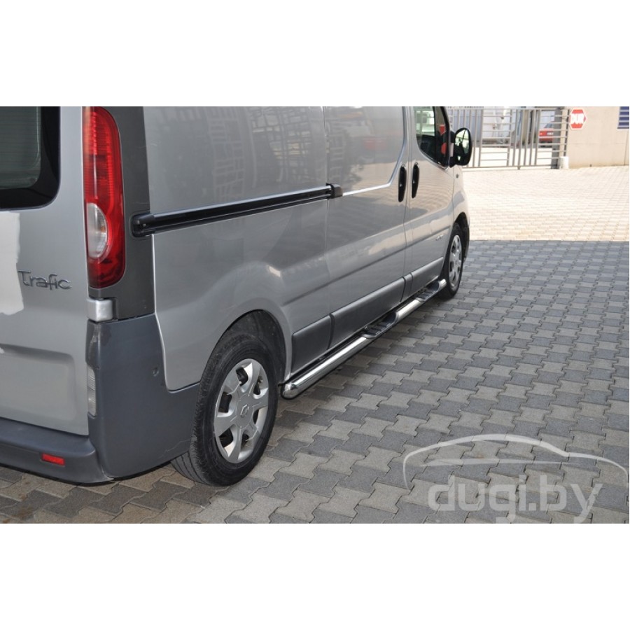 Боковые подножки трубы DELUX для Nissan Primastar предназначены для защиты боковых повреждений автомобиля, а также для удобства посадки и высадки пассажиров.