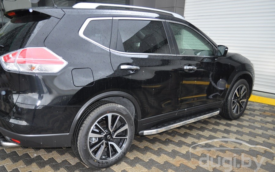 Защита боковых порогов состоит из алюминиевого профиля и боковой панели из алюминия покрытой хромовым напылением. С двух сторон подножки закрыты торцевыми пластиками из ABS. Верхняя часть порога (подножки) изготовлена из высококачественного ABS пластика. Износоустойчива к различным климатическим условиям. Подножки отлично вписываются в аэродинамический внешний вид и дополняют оригинальный дизайн Вашего Nissan X-Trail.