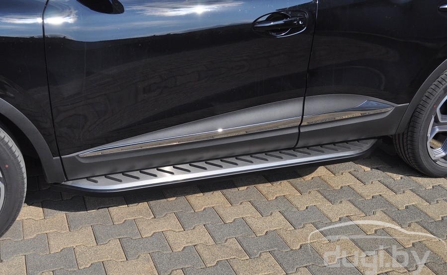 Боковые алюминиевые подножки (пороги) с пластмассовой накладкой для Opel Mokka предназначены для защиты боковых повреждений автомобиля, а также для удобства посадки и высадки пассажиров.