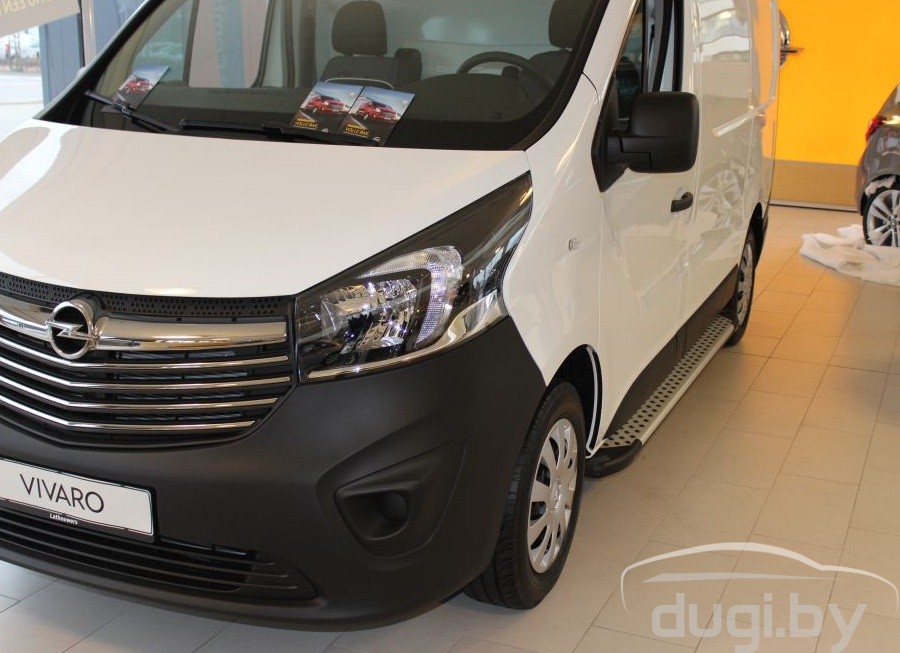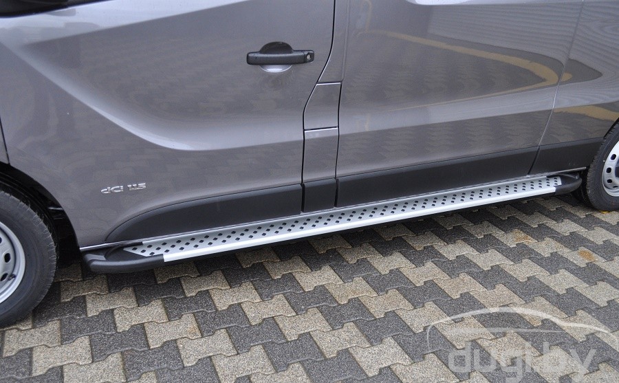Боковые алюминиевые подножки ''ARTEMIS'' для Opel Vivaro 2014 - ... предназначены для защиты боковых повреждений автомобиля, а также для удобства посадки и высадки пассажиров.