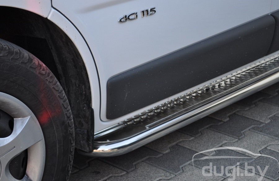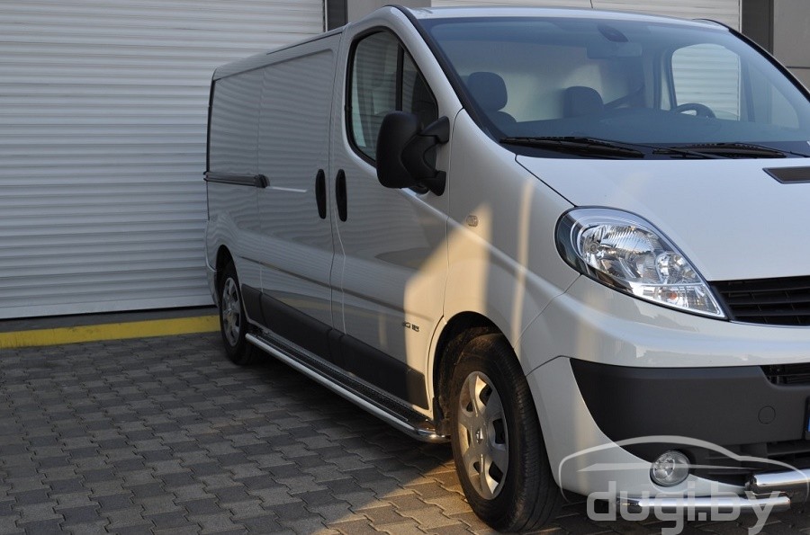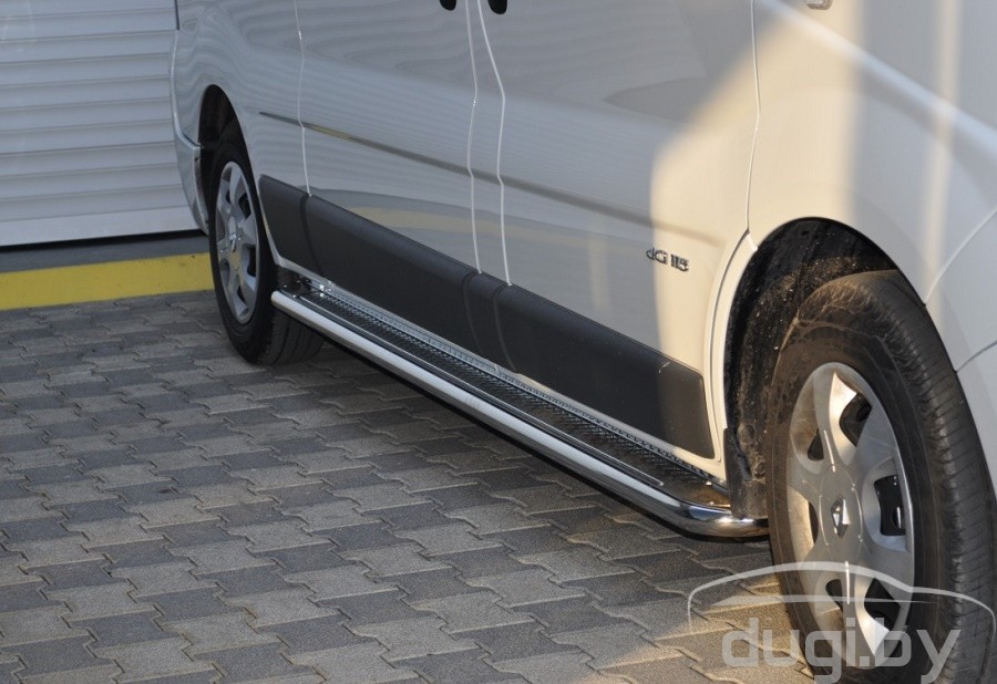 Боковые пороги (площадки) из нержавеющей стали для Opel Vivaro предназначены для защиты боковых повреждений, а также для удобства посадки и высадки пасажиров.