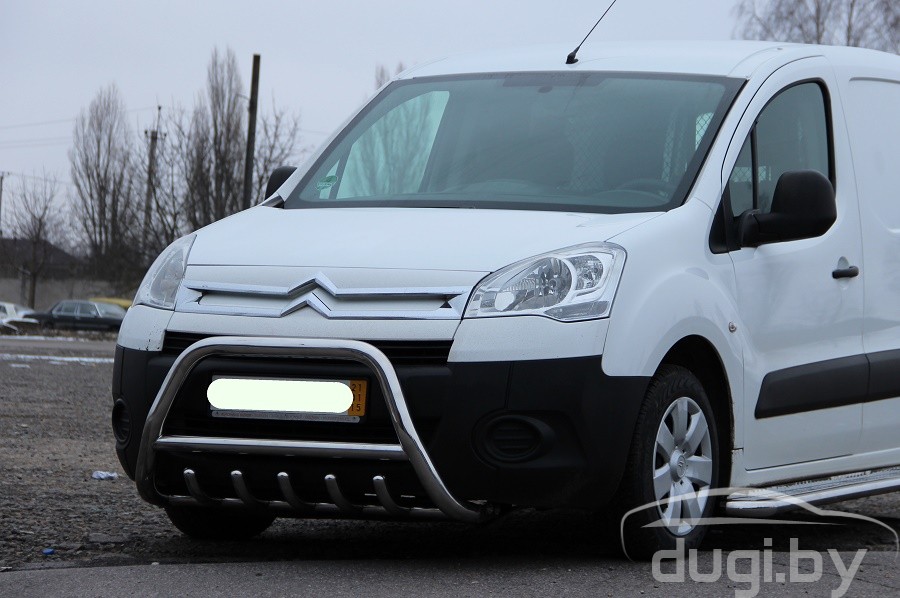Защита переднего бампера (кенгурятник) для Peugeot Partner предназначена для защиты кузова автомобиля при езде по пересеченной местности, а также от различного рода столкновений.