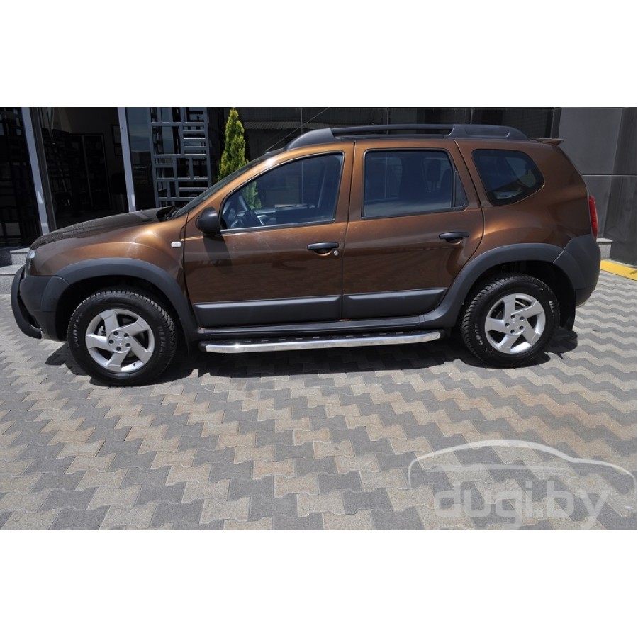 Боковые алюминиевые подножки (пороги) с пластмассовой накладкой для Renault Duster предназначены для защиты боковых повреждений автомобиля, а также для удобства посадки и высадки пассажиров.
