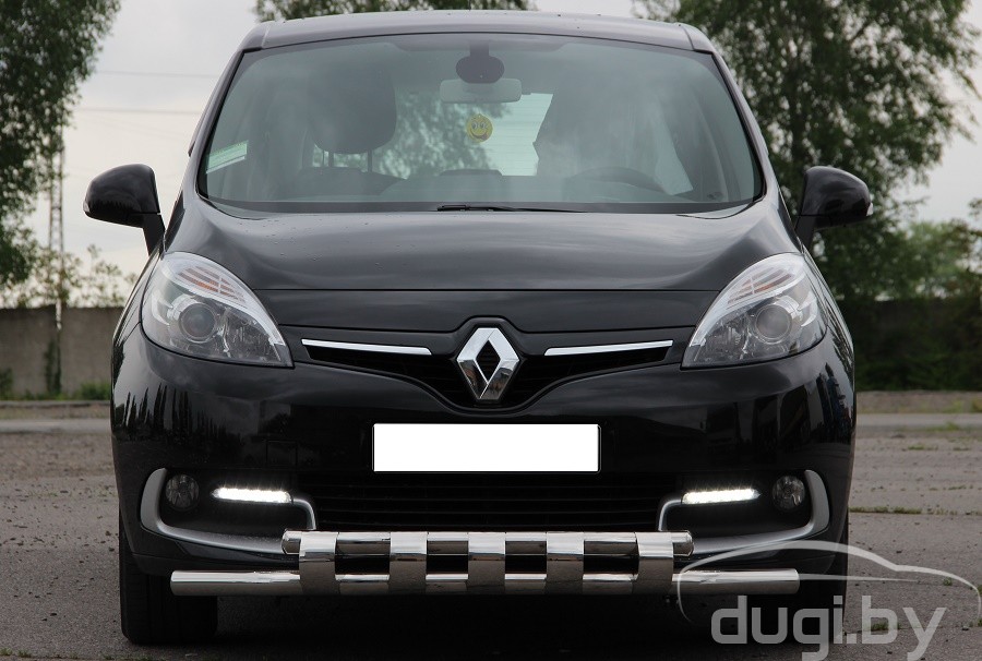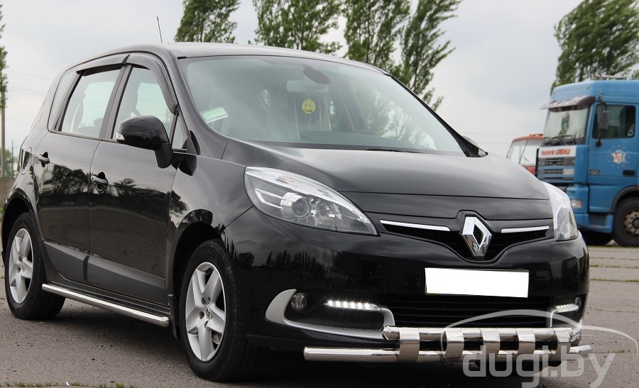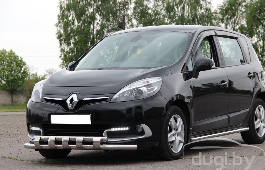 Защита переднего бампера труба двойная для Renault Scenic предназначен для защиты кузова автомобиля при езде по пересеченной местности, а также от различного рода столкновений.