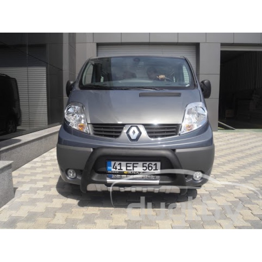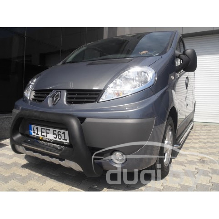 Защита переднего бампера (кенгурятник) для Renault Trafic предназначена для защиты кузова автомобиля при езде по пересеченной местности, а также от различного рода столкновений.