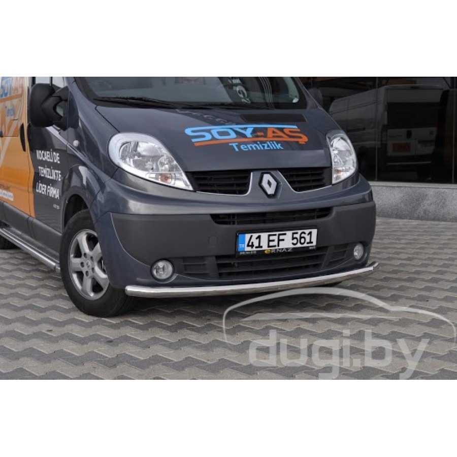 Защита переднего бампера (труба) для Renault Trafic предназначен для защиты кузова автомобиля при езде по пересеченной местности, а также от различного рода столкновений. Передняя дуга для Trafic изготовлена из высококачественной нержавеющей стали марки AISI 304.