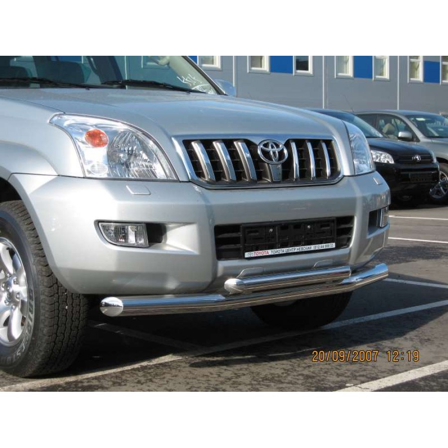 Защита переднего бампера (дуга) для Toyota Land Cruiser Prado 120 предназначена для защиты кузова автомобиля при езде по пересеченной местности, а также от различного рода столкновений.