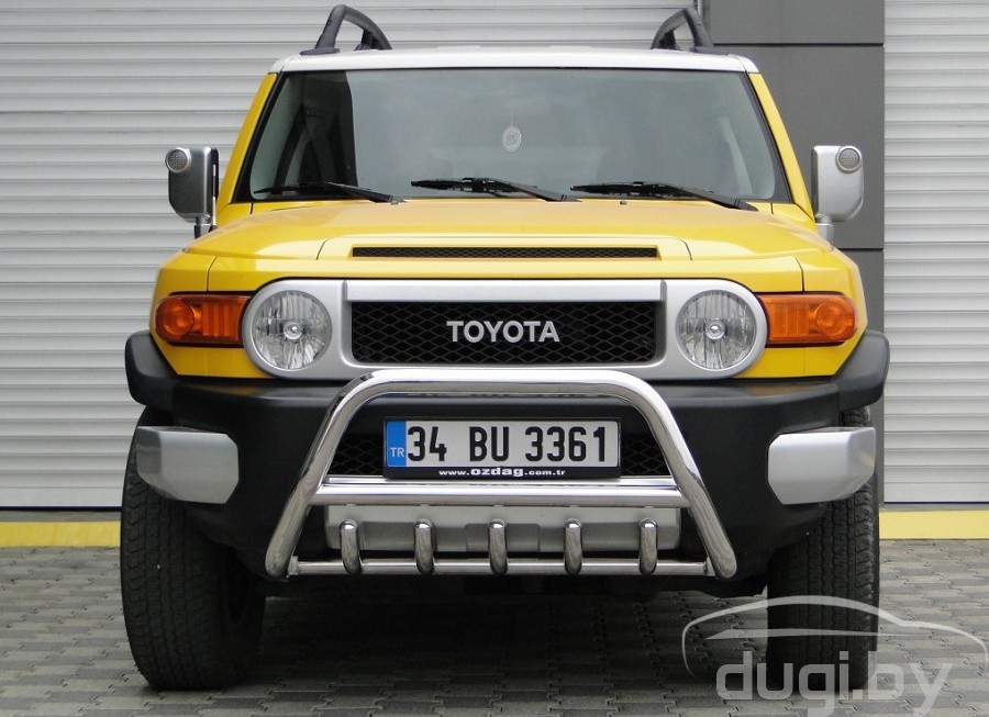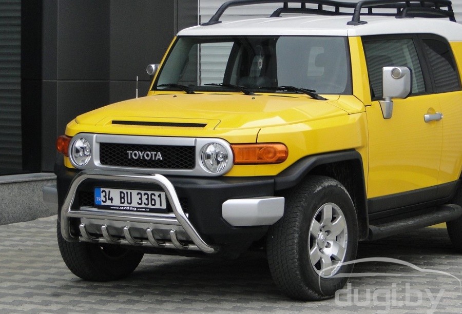 Защита переднего бампера кенгурятник для Toyota FJ Cruiser предназначена для защиты кузова автомобиля при езде по пересеченной местности, а также от различного рода столкновений.
