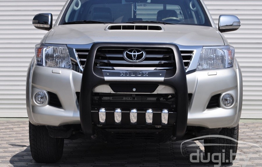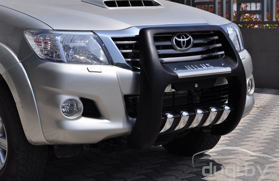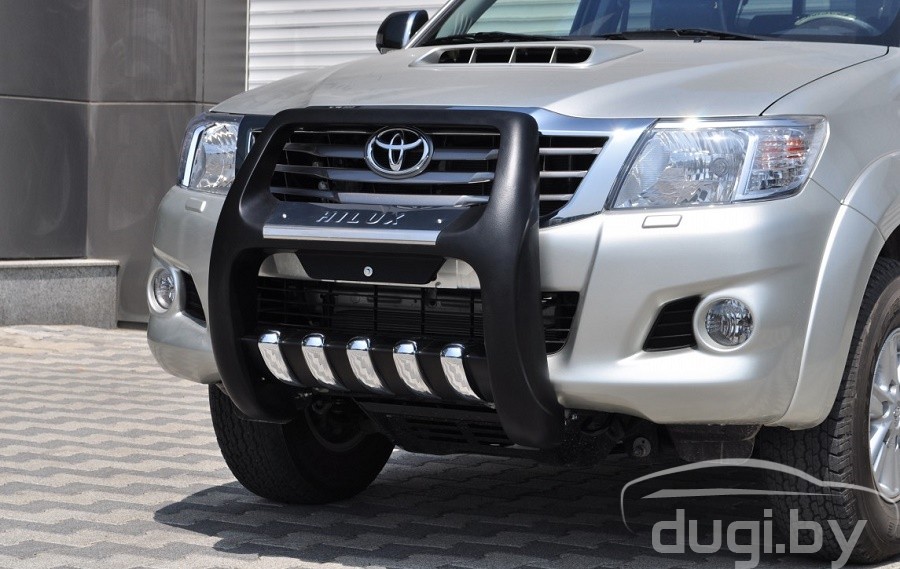 Защита переднего бампера кенгурятник для Toyota Hilux предназначена для защиты кузова автомобиля при езде по пересеченной местности, а также от различного рода столкновений.