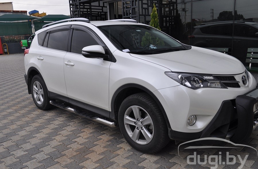 Боковые подножки (трубы) для Toyota RAV4 предназначены для защиты боковых повреждений автомобиля, а также для удобства посадки и высадки пассажиров.