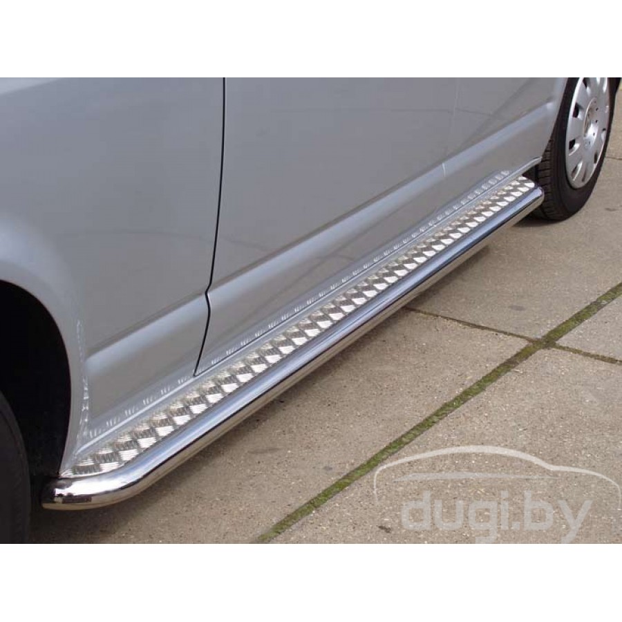 Боковые пороги (площадки) из нержавеющей стали для Volkswagen Caravelle T5 предназначены для защиты боковых повреждений, а также для удобства посадки и высадки пасажиров в Caravelle T5.
